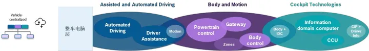 跨域整合——域控制器覆盖多重功能,保留局部的传统 ECU;