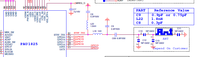 由于PAU1825内建了16M Flash集成度很高,所以整个外部设计很简单,参照参考设计即可完成。