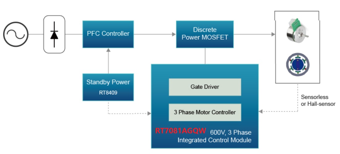 RT7081AGQW BLDC(直流无刷)电机正迅速成为要求高效率,高功率,高可靠性,低发热等特性和优点,进入排气扇行业。RT7081AGQW 的直流无刷电机控制器自带支持无/有传感器的正弦 FOC 控制算法,可满足排气扇、台扇、通风机等风机应用,还可以用于水泵,空气净化器等各种电机控制。