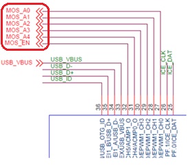 2. MCU M480 系列使用 Scan lines (MOS_A0~ MOS_A4) 控制 LED