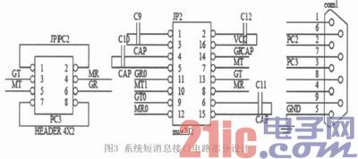 TC35短消息模块是RS-232C标准接口,RS-232C标准(协议)的全称是EIA-RS-232C标准。它规定连接电缆和机械、电气特性、信号功能及传送过程。目前在PC机上的COM1、COM2接口就是RS-232C接口。在正常运行模式下,约30s事件内若芯片在接收和发送引脚没有检测到有效信号,将自动进入Powerdown模式,此时耗电1μA。如果FORCEON和/FORCEOFF引脚均为高电平,那么Auto-Powerdown Plus功能失效。在Auto-Powerdown Plus功能有效时,如果检测到接收或发送引脚有信号输入,该芯片自动被激活,转入正常工作状态。如果任一接收通道的输入电压高于2.7V或小于一2.7V,或者位于-0.3V~0.3V的时间小于30 μs,则/INVALID(15脚)引脚为高电平(数据有效)。如果所有接收通道的输入电压位于-0.3V~0.3V的时间大于30 μs,则/INVALID(15脚)引脚为低电平(数据无效)。该芯片的以上特性,满足了TC35作为移动终端的接收和发送电路的连接要求。