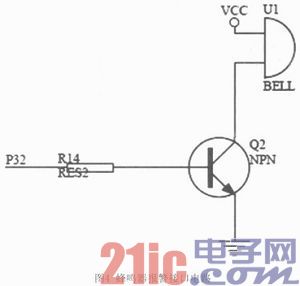 使用三极管8050驱动蜂鸣器工作,当处理器检测到报警信号后,就会给蜂鸣器信号以使其工作,达到家中警报响起的效果。如图4所示。
