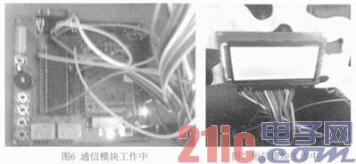 GPRS通信模块实现单片机对TC35模块的控制或zigbee无线通信技术,从而实现远程控制功能,图6所示为通信模块工作中,图7为短信模块工作中。