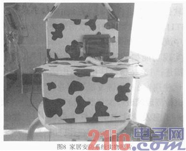 GPRS能在探测器探测下向主人发送报警信息,并且主人能够远程控制家居,可以通过该系统的两个独立按键实现与主人手机之间的联系,实物如图8所示。优点在于有短信和来电两个功能,能够减少主人在远程端因漏看短信造成不必要的麻烦;不足之处是探测器过于敏感,会出现错误报警的信息,能够显示出家居出现的状态。