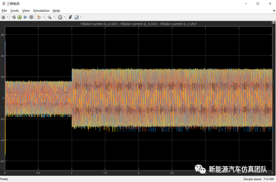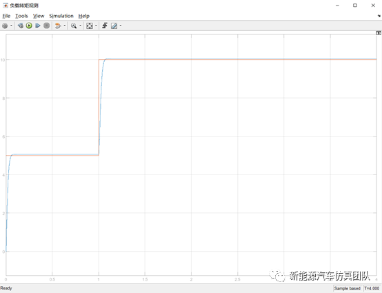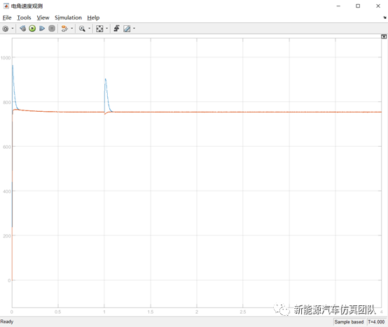 将S函数编写的参数辨识模块加入到永磁同步电动机控制系统模型中进行仿真实验。