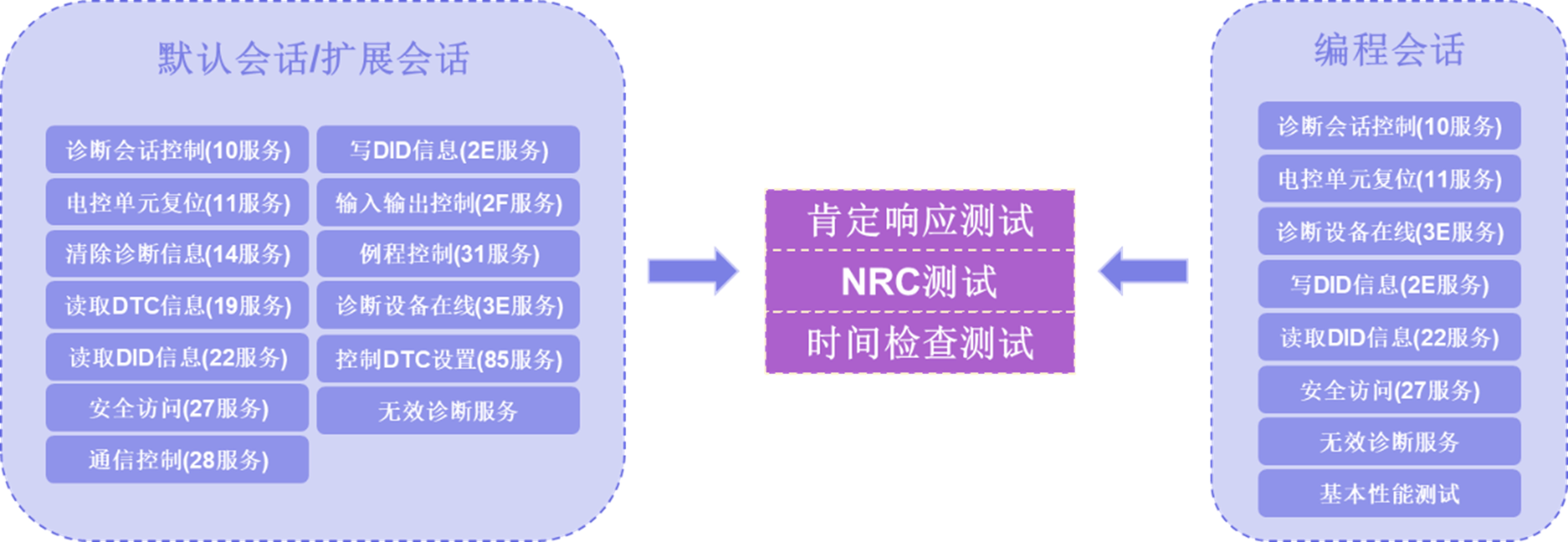 AETP.UDS的测试内容主要包括:默认会话/扩展会话下和编程会话下的各服务组功能测试。默认/扩展会话下的测试内容包含肯定响应测试、NRC13测试、NRC12测试、NRC优先级测试等。编程会话下,除了对各个服务的肯定响应测试和NRC测试外,增加S3_server时间检查测试等基本性能测试。