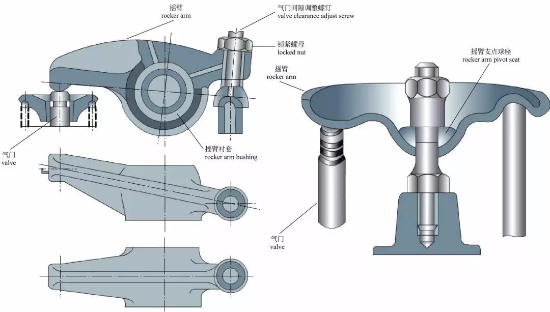 摇臂 摇臂轴 有些发动机利用摇臂轴支撑摇臂。