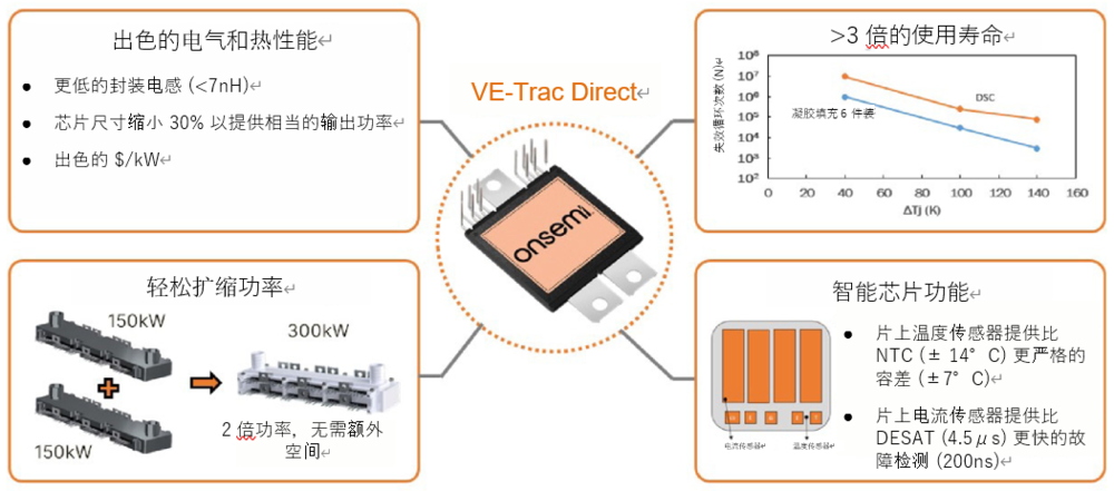 通过与安森美合作,工程师可以探索各种选择。安森美拥有完整的主驱逆变器解决方案组合,包括 IGBT 和 SiC 技术,因此 OEM 和一级供应商可以为其应用找到合适的逆变器半导体解决方案。安森美为 EV 和 HEV 应用提供广泛的牵引逆变器解决方案,VE-Trac 系列就是用于汽车功能电子化的高度集成功率模块。这些模块采用创新的封装、先进的散热技术并具备出色的可靠性。