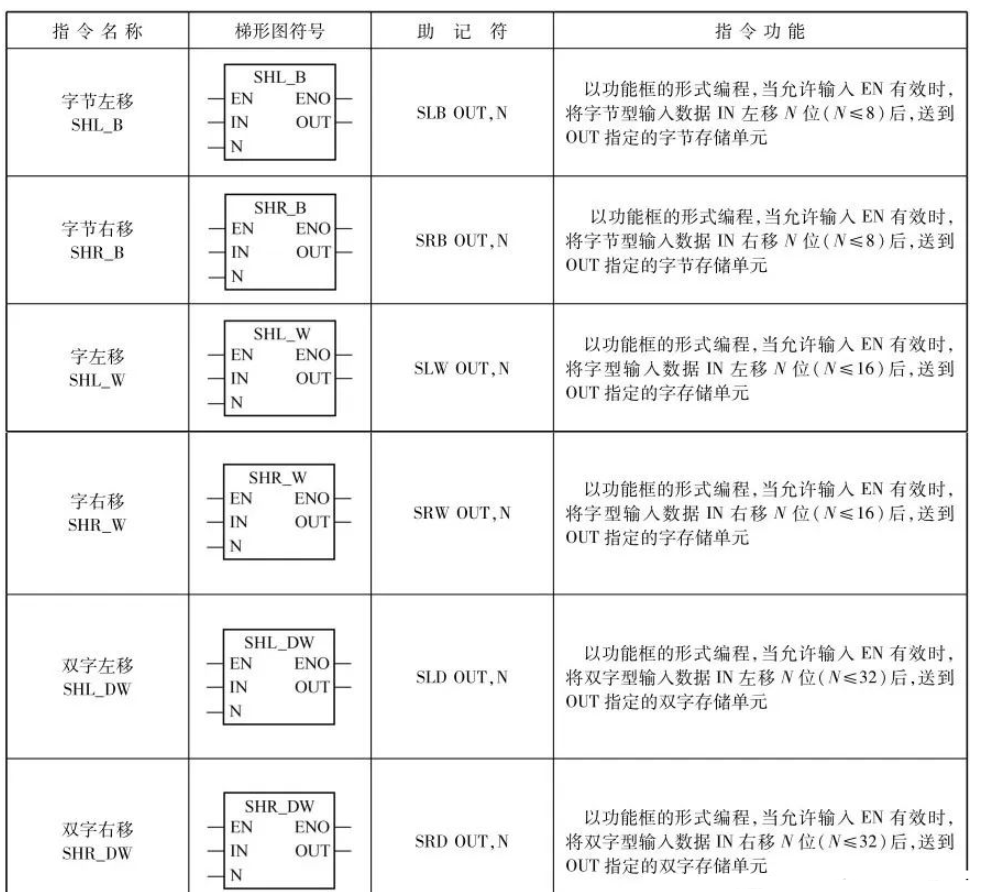 PLC(可编程逻辑控制器)中的左移指令和右移指令是数据处理中常用的指令,用于将数据中的位向左或向右移动指定的位数。