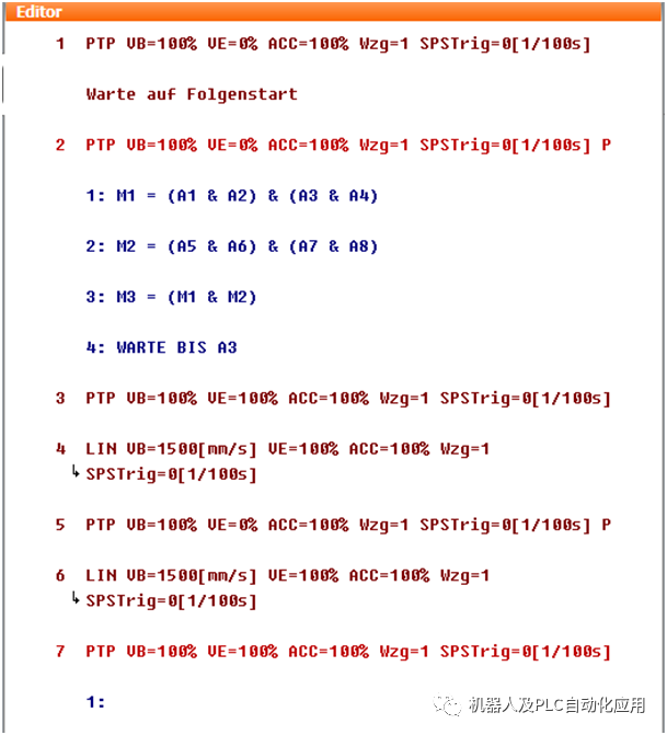 机器人控制系统等待上一级控制系统给出“程序启动”(SRB)的信号。在该信号给出后则启动此序列程序。