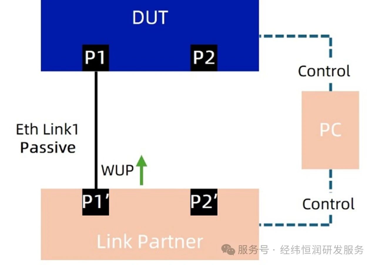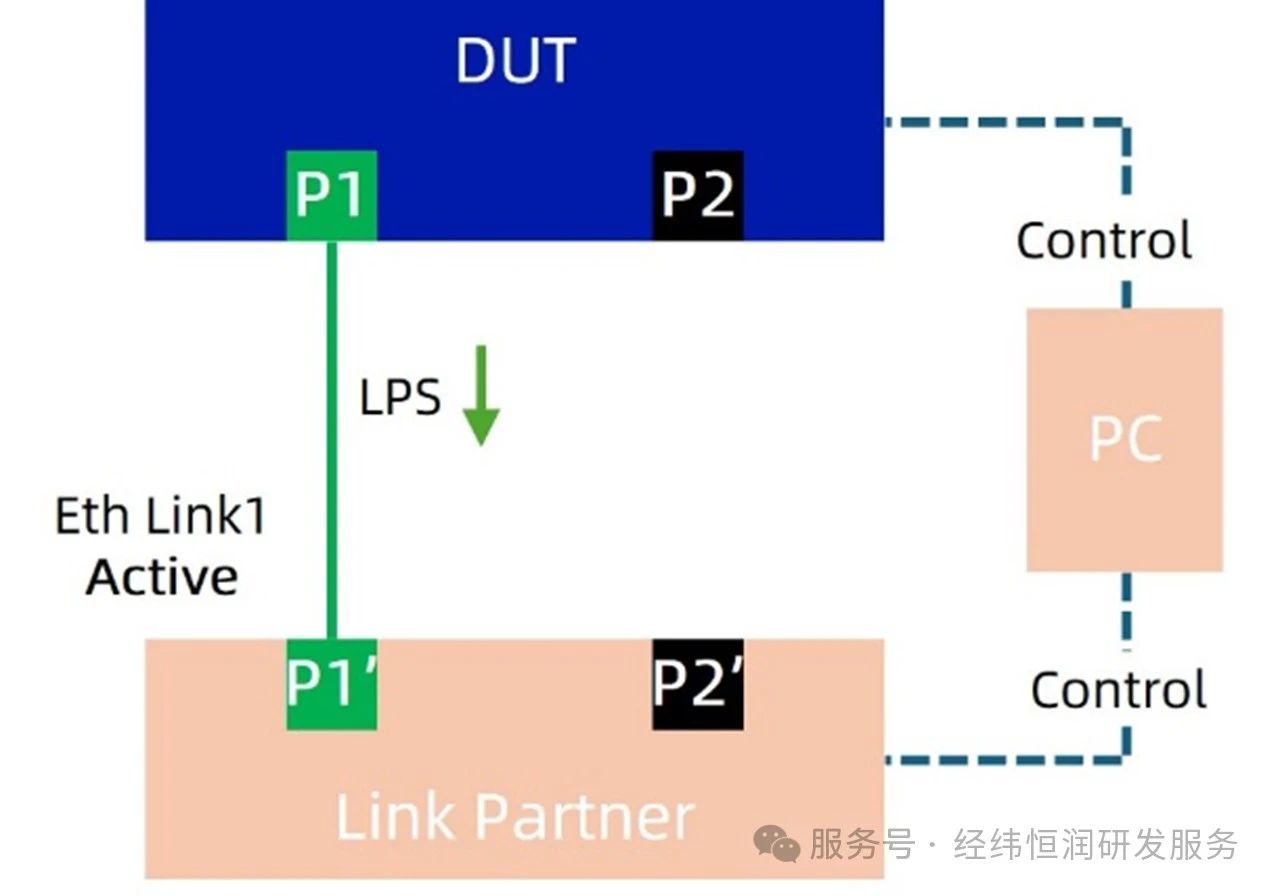 链路伙伴(LP,Link Partner):与DUT连接的设备,通常也是一个支持1000BASE-T1标准的设备。LP用于模拟实际网络中的通信伙伴,确保DUT在休眠唤醒过程中能够正确响应。