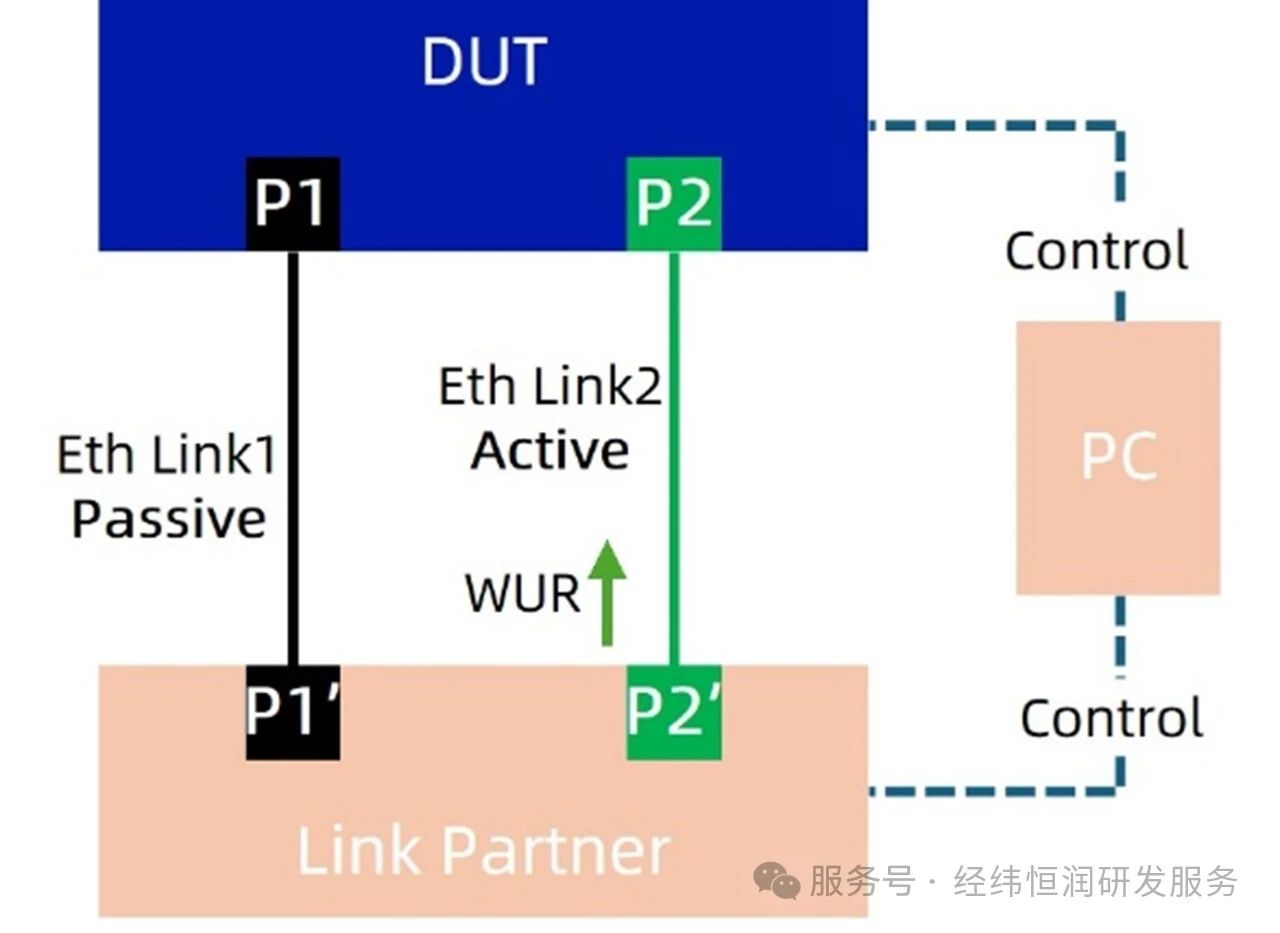 控制信道:DUT和Link Partner均需要提供控制信道,使得PC可以通过控制信道控制DUT和Link Partner进入休眠/唤醒状态,同时获取关键状态的时刻(如:发出唤醒指令的时刻)。