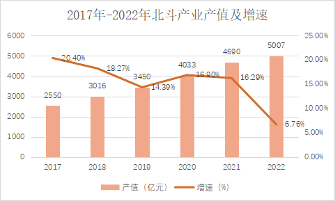 数据显示,2022年我国北斗产业总体产值达到5007亿元人民币,同比增长6.76%。