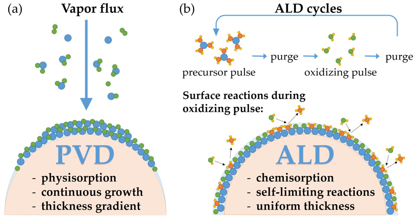 原子层沉积(Atomic layer deposition,ALD)是一种基于连续使用气相化学过程的薄膜沉积技术,将物质以单原子膜形式逐层镀在衬底表面的方法。ALD 是一种真正的纳米技术,以精确控制方式实现纳米级的超薄薄膜沉积。